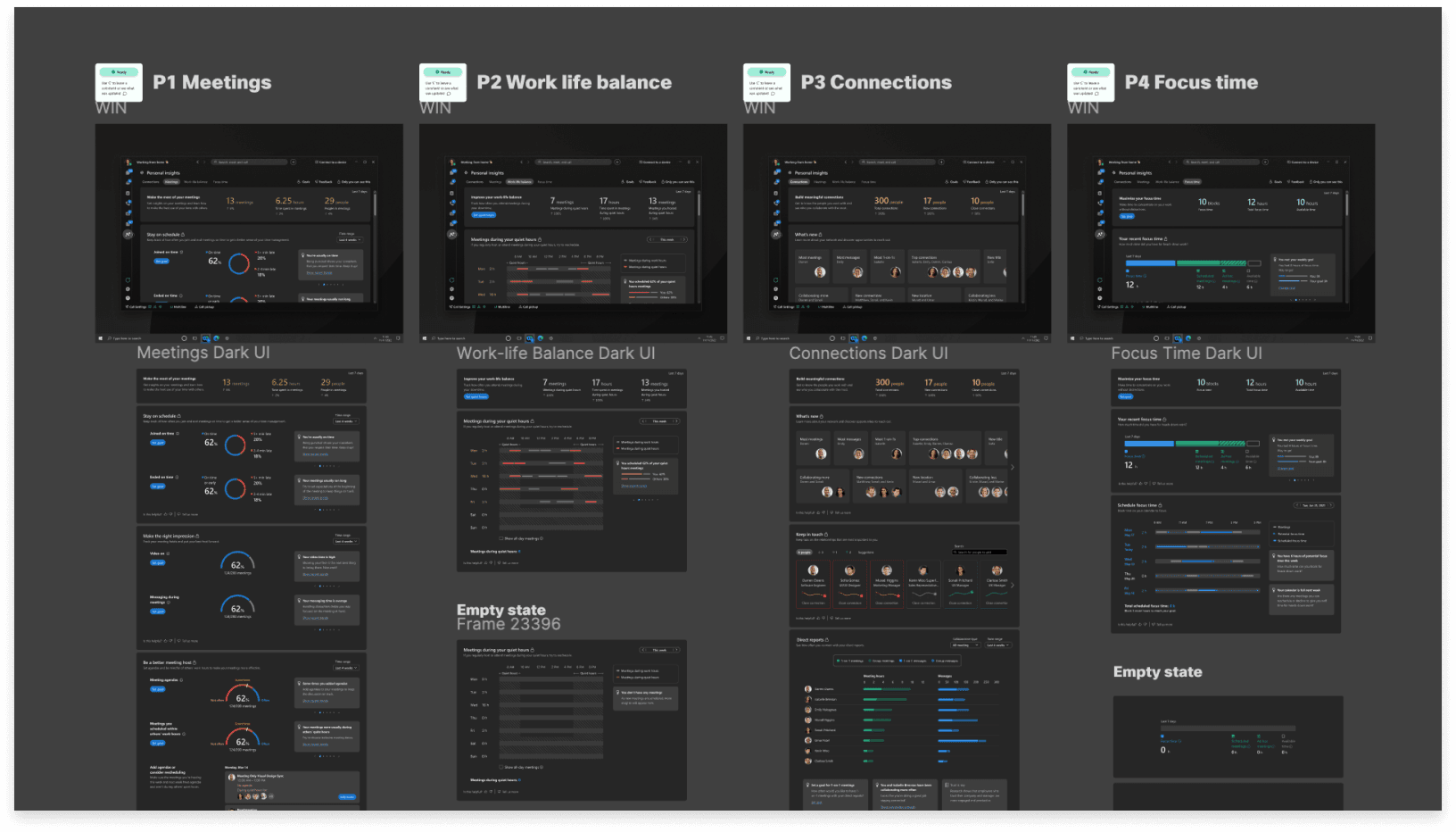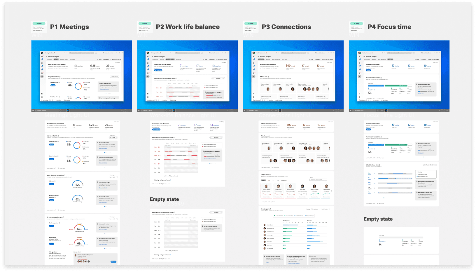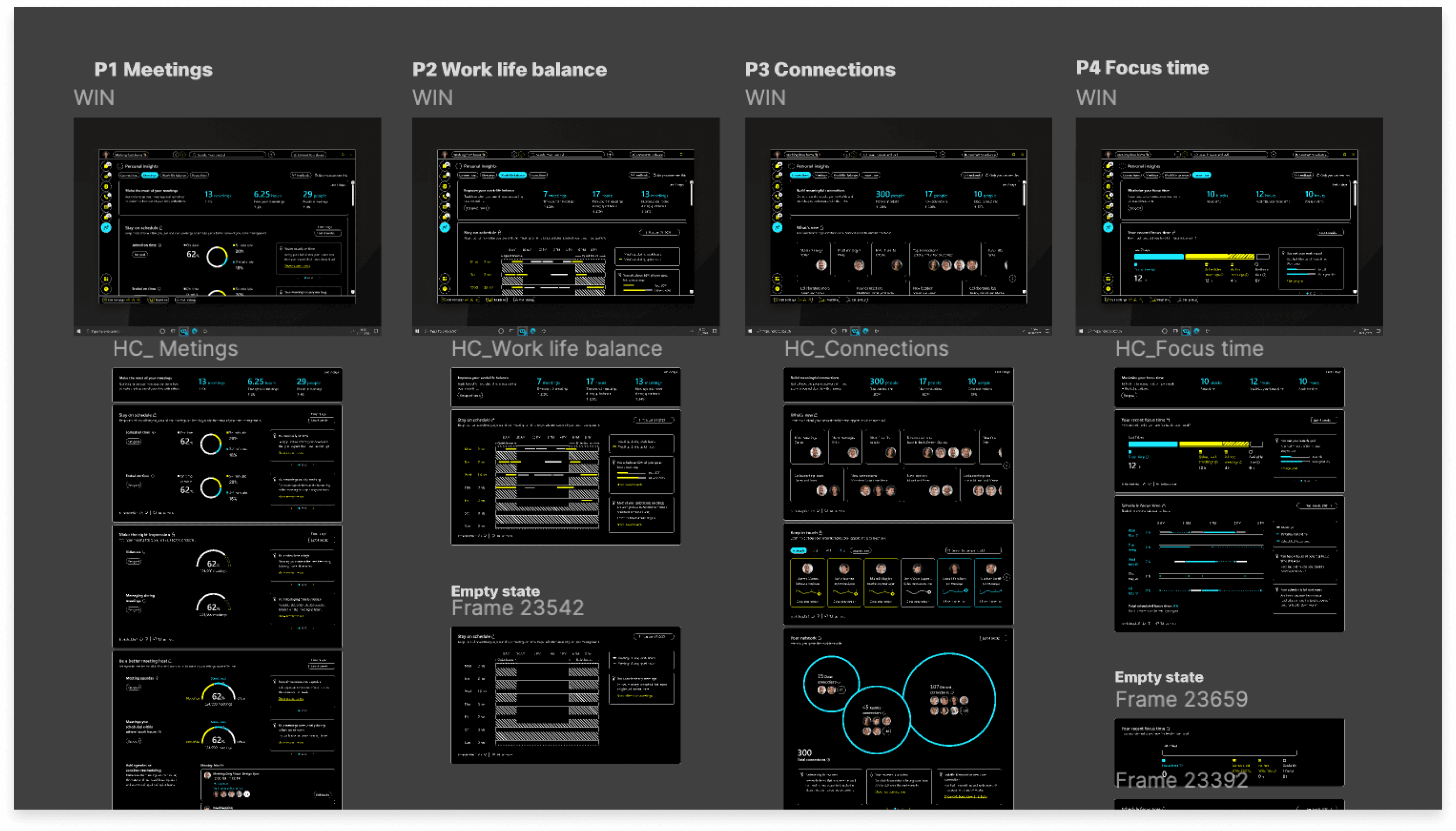 After examining various strategies to enhance users’ work-life balance and efficiency, the team recognized the need to validate the features and concepts related to personal insights. We aimed to research how users optimally experience these insights and how our features would directly impact their daily workflows.
