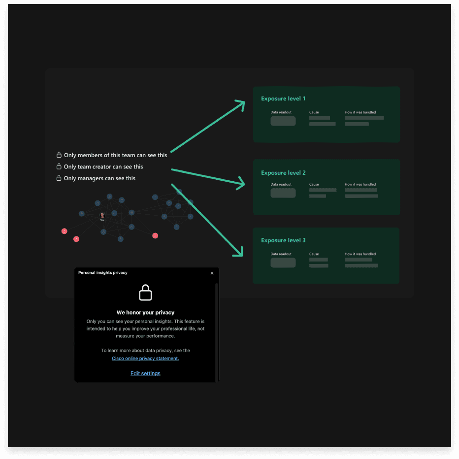 We updated our design to focus on “manager insights” versus “team insights,” allowing individual contributors to use these insights as tools for engaging with others, not just managers. Additionally, we provide clear definitions of exposure levels and data usage, ensuring that analytics are tailored specifically for the user.