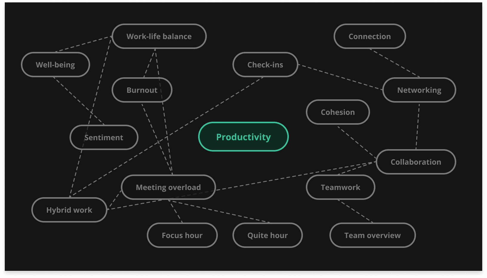 The solution shifted from monitoring everyone's data to focusing on individual productivity. A generalized data chart wasn't successfully conveying the intended message, so our team concentrated on identifying interruptions that may affect users' work-life balance.
